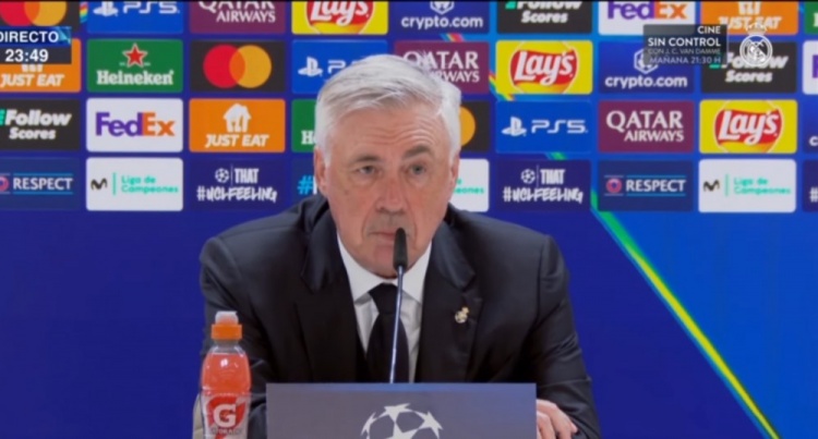 直播吧3月5日讯 北京时分4:00,欧冠1/8决赛首回合,皇家马德里主场2-1打败马德里竞技。赛后,皇马主帅安切洛蒂出席新闻发布会。