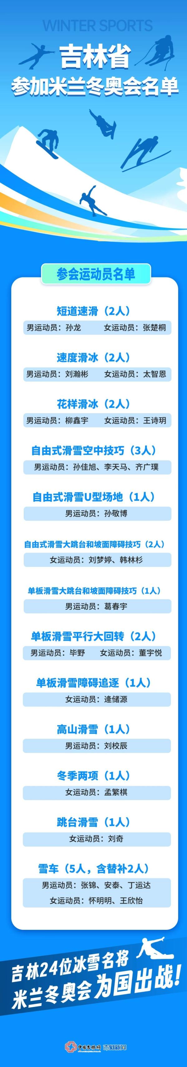 从赵伟昌到武大靖、王人广璞,再到行将耀眼米兰的张楚桐、孙龙、刘梦婷,吉林冰雪的力量世代相传,不停升级,也期待他们在米兰的冰雪之上,续写光芒,为国争脸,让世界再次见证这片冰雪沃土所滋长的无穷可能与磅礴力量!
